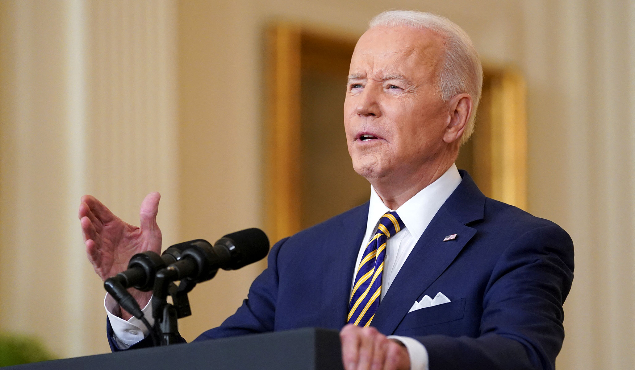 The president dismissed those who have called him out on not fulfilling his campaign promises, arguing that he did not make promises but proposals and that in the evenly divided Senate, senators essentially become presidents with the ability to obstruct policies that they disagree with. Still, he claimed Democrats are largely united, with 48 of the 50 Democrats voting with him on everything and the other two — Senators Joe Manchin and Kyrsten Sinema — voting with him on “80 percent of everything.”
